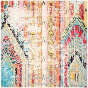 Transform your space with this stunning square area rug, measuring 10 feet by 10 feet and offering a striking fusion of blue and orange hues. Crafted with precision, this power loomed piece from Turkey offers a unique blend of 57 percent polypropylene, 30 percent cotton, and 13 percent polyester. Embrace the charm of Bohemian style with its captivating abstract pattern, perfect for adding flair to any room. The 3/8 inch height provides a comfortable underfoot experience while making a stylish statement. Whether for your living room or bedroom, this rug brings warmth and character to your home.