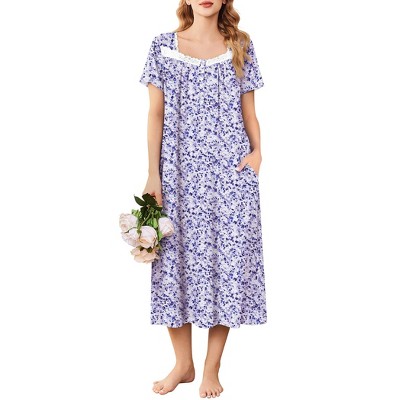 Ekouaer Robes for Women Waffle Knit Bathrobe Soft Lightweight Knee Length Loungewear Floral Purple M