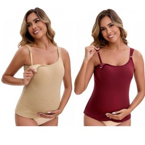 INSPIRE CHIC Women's Maternity Thermal Tank Tops with Built-In Bra Pregnancy Nursing Camisole with Adjustable Straps 2 Packs - 1 of 4