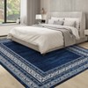 Indoor Modern Bordered Non Slip Throw Carpet Low Pile Machine Washable Area Rug for Living Room Bedroom