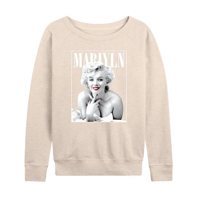 Women's Marilyn Monroe Lightweight French Terry Wide Neck Long Sleeve Graphic Shirt - Birch - Medium