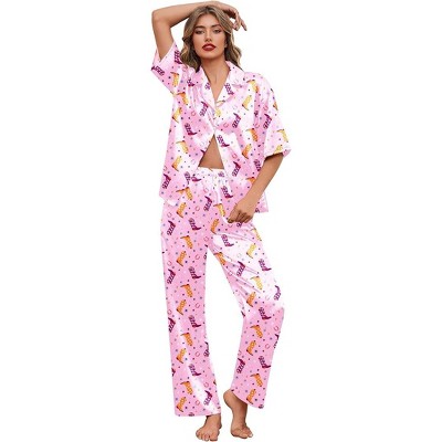 Ekouaer Lounge Sets for Women Short Sleeve Tops and Long Pants Soft Comfy Pajamas Set 2 Piece Outfits Rose Leopard M