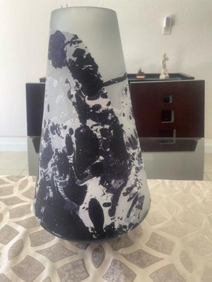 Glass Vase for Living Room Decor - Flower Vase with Abstract Design Perfect for Pampas Grass, Faux Stems, or Fresh Flowers - 11" White
