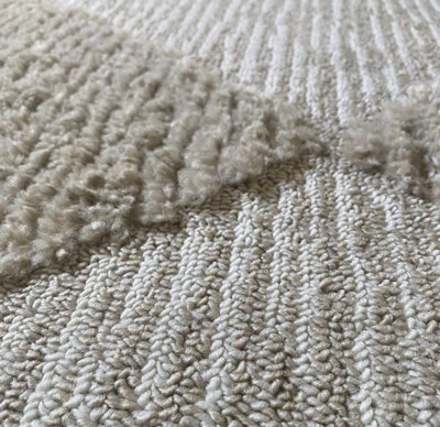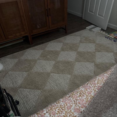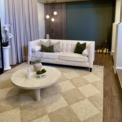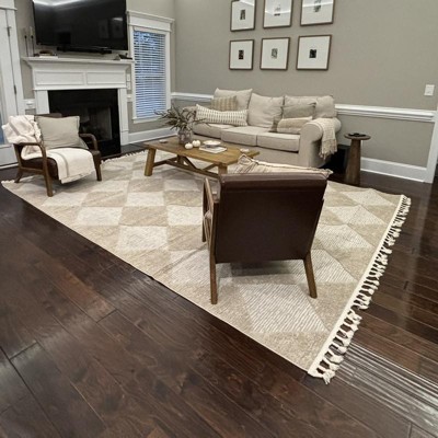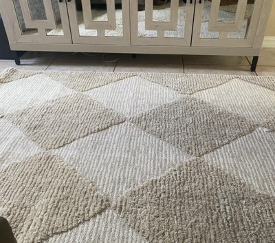 Complete your space with this geometric area rug. With neutral hues and a dynamically textured high/low diamond pattern, this floor covering will pair perfectly with any décor from modern to bohemian. Machine made of synthetic fibers; this rug is built to last while remaining soft underfoot. Enjoy every room in your home with our easy to care for and pet-friendly area rugs.
