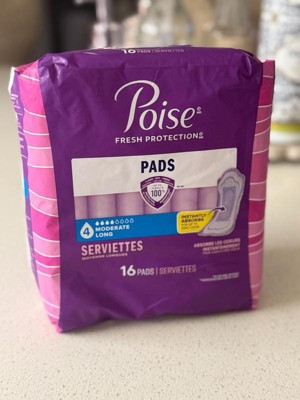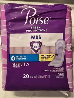 • POISE INCONTINENCE PADS: 20 incontinence and postpartum bladder leak pads, 4 Drop Moderate Absorbency, regular length (20 pads total)​
