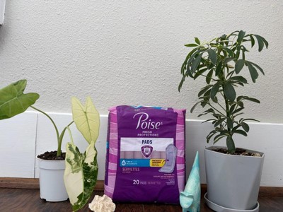 Enjoy up to 100% clean, dry and fresh protection guaranteed* with Poise Incontinence & Postpartum Pads for Bladder Leaks. Unlike period pads, which are meant for menstrual needs, Poise pads are designed to offer protection against light bladder leaks. These disposable incontinence pads instantly absorb for up to zero odor and rapidly lock away more wetness** for amazing dryness. In fact, Poise incontinence pads for women are made with odor-reducing material and helps control odor for up to 12 hours. They also come with a moisture-wicking top layer that is designed to feel dry throughout wear. Plus, our pads for women are 25x drier than the leading period pad, offer up to zero leaks, and deliver up to 12 hours of protection. Each bladder leak pad features a ContourFit design, making it softly curved to help prevent bunching and has a wider front and back than in the middle to help keep you comfortably protected. Poise Incontinence & Postpartum Pads for bladder leaks are available in 3 Drop Light, 4 Drop Moderate, 5 Drop Maximum, 6 Drop Ultimate, 7 Drop Ultra, and 8 Drop Overnight absorbencies. Shop for Poise discreetly by having it shipped directly to your door or pick up curbside. Poise adult incontinence products are HSA/FSA-eligible in the US — check with your provider for coverage details. (*Purchase by 12/31/26. All requests must be postmarked within 30 days of purchase. Online access required. Limit 1 per household. Original receipt/UPC required. Restrictions apply. See Poise website for details) (**vs the leading period pad)