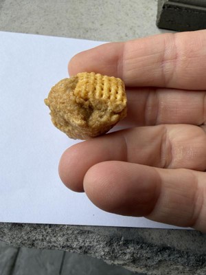 Like all the different Chex cereals, but in my most recent box of Honey Nut, I found a little something extra. Looks either like manufacturing got a little sloppy or they are now adding surprises, like Cracker Jacks.