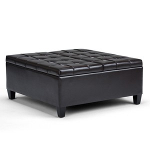 36" Elliot Coffee Table Storage Ottoman Faux Leather Tanners Brown - WyndenHall: Upholstered Bench with Wood Legs