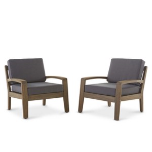 Grenada 2pc Wooden Club Chairs With Cushions: Weather-Resistant Acacia Frame - Christopher Knight Home