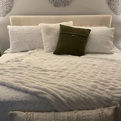 The headboard is great quality for under $200 price. Would be perfect if the color had less yellow as other reviews have noted. The solid sheets on my bed are sour cream color from Target for comparison. The quilt is Dove Stitch off-white also from Target. Keeping it and will work with the color.
