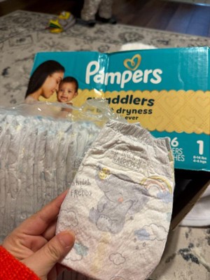 Wrap your baby in our best dryness and comfort ever. Try Pampers Swaddlers. These Pampers disposable diapers are designed with a KeepDry Liner and irresistible pillowy softness to keep your baby dry and comfortable from their very first days and beyond. Plus, they're drier than the Luxury Diaper for all-night comfort. Pampers Swaddlers are dermatologist tested, hypoallergenic, and free of elemental chlorine, parabens, and latex** to protect babies' sensitive skin. Pampers Swaddlers surround your baby with up to 100% blowout and leak protection, thanks to their absorbent core and All-Around LeakGuard with Blowout Barrier. Trusted by pediatricians and parents alike, Pampers Swaddlers are from the Most Awarded Diaper Brand^, the #1 pediatrician recommended brand^^, Best of Babylist winner, and the #1 choice of parents^^^. Pampers has been providing products that prioritize comfort, safety, and effectiveness for over 60 years. Earn savings while you shop with Pampers Rewards. Every 10 scans = $10 off. Scan. Earn. Repeat. Use them with Pampers Sensitive Baby Wipes for healthy skin. Pampers Swaddlers are available in preemie diapers, newborn diapers, and size 1 through size 8. To find your baby's ideal fit, just measure by weight and reference our available baby diaper sizes. Pampers preemie diapers (up to 4 lbs.), newborn diapers (up to 10 lbs.), size 1 diapers (8-14 lbs.), size 2 diapers (10-22 lbs.), size 3 diapers (13-26 lbs.), size 4 diapers (15-34 lbs.), size 5 diapers (20-37 lbs.), size 6 diapers (23-34 lbs.), size 7 diapers (26-50 lbs.), size 8 diapers (30+ lbs.). *Based on S4 Luxury Diaper Brand. 3 typical wettings of 75mL **No natural rubber. ^ Based on Awards Given 2021-2025 ^^ Based on 2025 survey of U.S. and Canadian pediatricians. ^^^ Based on Nielsen dollar sales L52W
