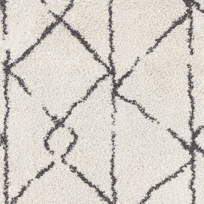 Beautiful plush cream rug with gray design. Rug does not give off lint. Great purchase!
