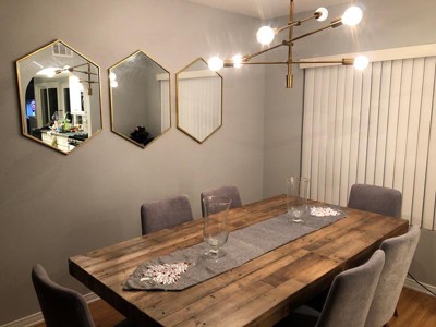 [This review was collected as part of a promotion.] I absolutely love this mirror! It looks so nice with a modern geometric flair. I put it in my dining room next to my bar cart and think it was the perfect addition!