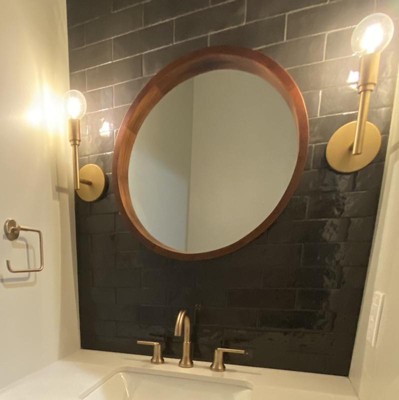 I found a brown round mirror on other website first, I like it. But then I checked the target website finding this gorgeous mirror and 100 dollar less than the other website. I ordered it right away. When I got it, I was so happy for this purchase. It’s just exact what I want.