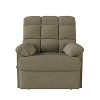 I bought this because it was pretty affordable and I needed a recliner after surgery to sleep in. Thank goodness I can finally sleep in my bed again. Not a very nice recovery considering I had to use this junk. This is the most uncomfortable chair ever with no support whatsoever in the back or arms. I had to sit with several pillows stacked. It’s very hard to close. It’s also more of a tannish brown color than green. I don’t think I would recommend this chair, pay the money and get something nicer instead.
