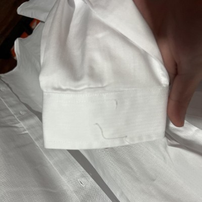 Shirt sold to me was used and return. It was stained and visibly dirty in the sleeves and the shirt on both back and front. No tag. Unbelievable that target would process and used item for resale!