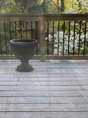 [This review was collected as part of a promotion.] Really good looking plastic planter. Was looking for black urns but wasn't sure I wanted to commit to the price or permanence of something made out of stone or heavier material.