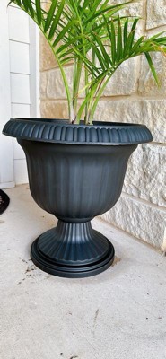Southern Patio Large 14 In Outdoor Lightweight Resin Utopian Urn Planter, Black