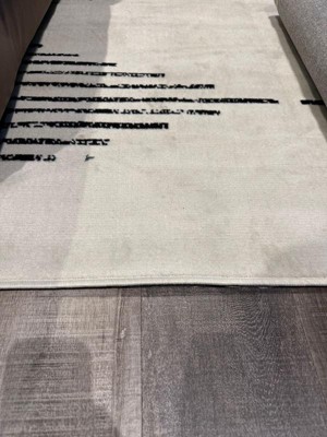 Q: All of the photos are of a cream colored rug with a black diamond stripe pattern. Why does the description say gray when the rug looks cream in all of the photos? What color is it really?