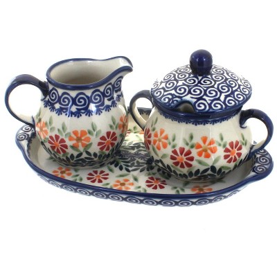 Refined ceramic cream and sugar set is the perfect companion for your daily pick-me-up. Versatile designs match your decor so you can leave it out on display. Sugar Bowl-1 cup capacity, 4.5 inches tall. Creamer-1.5 cup capacity, 5 inches tall. The Art of Polish Pottery, as we know it today, started as local folk art centuries ago in the German province of Silesia. The first known pieces of “Bunzlauer” stoneware dating back to the 16th century were crafted by hand and decorated with a folk art stamping technique using potatoes. Original designs were inspired by the peacock feather using the colors of cobalt blue, sage green and ferrous red. These designs and colors are still the inspiration for modern day patterns.Today, skilled Polish artists still individually handcraft and hand decorate each piece using small sponges to stamp each pattern and color. After the process of mixing ingredients, molding the pottery, applying the decorations and glaze, the pottery is twice fired. This process makes the pottery extremely durable, it will not crack or chip easily, and it is perfect for use in the microwave, dishwasher, oven and freezer. Along with our pottery, we have sourced a range of absolutely beautiful hand blown glassware from Poland. It is the perfect addition to your Polish Pottery Collection!
