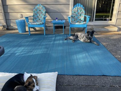Great outdoor rug and seems to holding up great so far. Pups see to love it too.