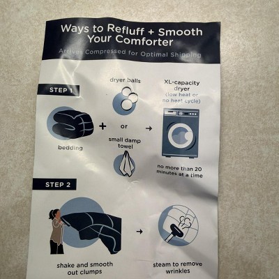 From what I’m reading this comforter can be Aachen washed but tumble dry no heat. And tumble dry in 15-20 minute increments. It will take 48 hours to dry this item.