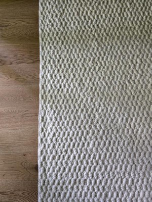 (This review was collected as part of a promotion.) Recently purchased the Sutton Solid Chevron Rug in Ivory and was pleasantly surprised by the speedy delivery, the quality and softness! It's 80% wool and 20% cotton and a perfect combination of firm and soft. It doesn't smell (like some new rugs do) and minimally sheds. I only wish I'd gotten a larger size. As it is hand made, the edges are not perfectly symmetrical which adds some funkyness to the shape.