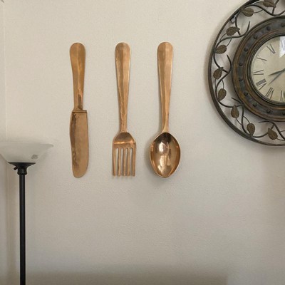 4" x 23" Set of 3 Aluminum Utensils Knife, Spoon and Fork Wall Decors Silver - Olivia & May