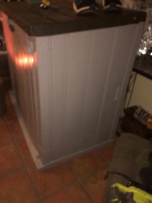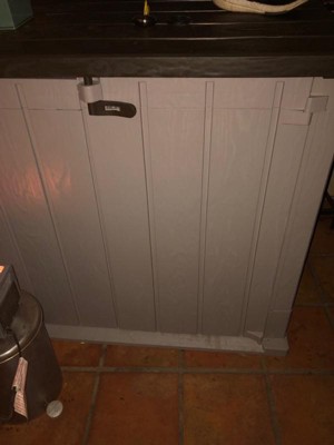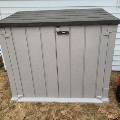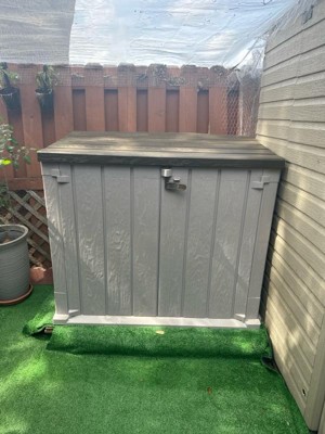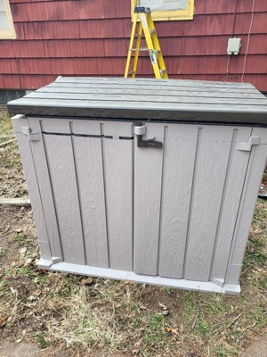 [This review was collected as part of a promotion.] I was so excited to see that I was getting this to review. My fiancé and I have a pretty small home, so extra storage space is always welcome. However, I've been disappointed with this at every turn. First, the package was delivered to the wrong address (as every FedEx package from Influenster has ever been) and I was only able to eventually track it down thanks to an honest neighbor. By the time I found it, the box was trashed because it had been rained on. Then when my fiancé and I removed it from the box, we found that the product was damaged (note the rather sizable crack circled in red in the pic) because the plastic is so flimsy. In addition to that, it was quickly apparent that although it has a place to put a lock on, there's not much point. The back of the product is constructed of thin corrugated plastic (i.e yard signs for political campaigns, advertising, etc.) and is not at all secure and not watertight. It would probably be fine for storing things like hoses or a couple of lawn chairs, but nothing that weighs more than a couple of pounds or needs protection from the weather. For the $250 it sells for, you'd be better off buying the lumber, steel, and hardware required to build a similar sized but much more sturdy storage box.