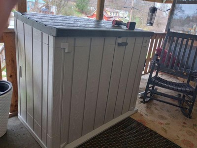 [This review was collected as part of a promotion.] This product is a lot bigger than I thought! I was going to use it to store my gardening stuff but once I realized how big it was, now I use it to store all my outdoor furniture cushions and pillows! There is still even extra space when storing those! It is better than I could have imagined! No leakage from the rain or anything! I couldn’t recommend this product more!!