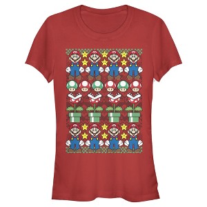 Juniors Womens Nintendo Ugly Christmas Mario T-Shirt - 1 of 3