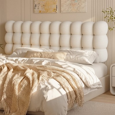 Emma and Oliver Quilted Tufted Upholstered King Size Headboard in White Fabric