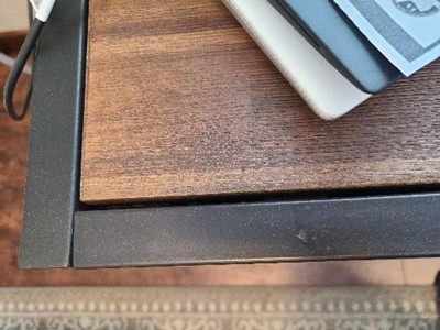 The metal frame came with several dings and a couple of scuff marks that won't come out. The seams aren't flush on the corners. The drawers don't slide well. It is visually appealing.
