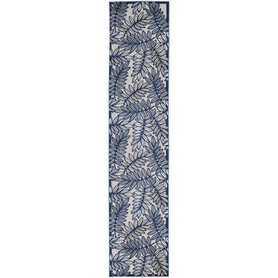 Nourison Aloha Floral Textured Flatweave High-Low Indoor Outdoor Runner Rug Blue/Grey 2'3" x 10'