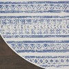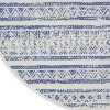 The basis for a Zen-like living space begins with this boho area rug from the Whimsicle Collection. Purposefully distressed geometric patterns in blue and grey woven onto a base of neutral ivory create a warm and inviting effect in your living room, bedroom, dining room, or home office. This global-inspired design is machine made of low profile, easy to clean polyester.