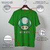 The game never stops with the Nintendo Mario Get a Life Kelly Green T-Shirt. A green 1-Up mushroom is printed above "Get a life" on the front of this kelly green Nintedo graphic tee.