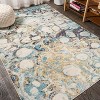 Inspired by the colorful abstract designs of marbled papers, this bold rug has a modern, coastal vibe. Blue, beige and accents of gold swirl around pebble-tan elements. This unique rug's overall pattern makes it perfect for homes with kids and pets. It's the perfect centerpiece for a mid-century modern, contemporary, beach house or minimalist interior.