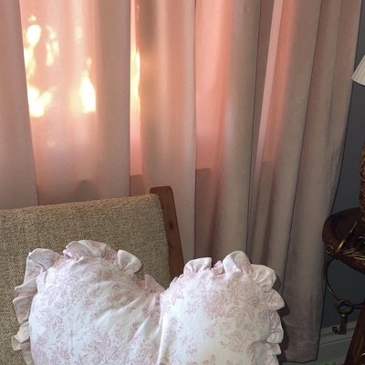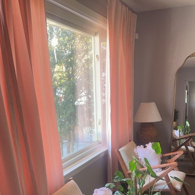 Beautiful velvety blush pink curtains. I love that it has the back tab option to provide natural pleating. I used these curtains for my closet and I’m not disappointed. They definitely needed a good steaming before hanging up, though. I used my handheld steamer and steamed them from the back to not damage the velvet.