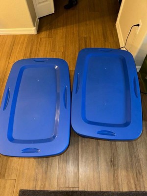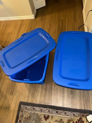 [This review was collected as part of a promotion.] Chef's kiss to these 2 tubs for form, fit, function and fabulous finish to my arsenal of blue and silver multiple size tubs to reuse rather than boxes. Great value! These are now my largest and added 2 gallons to capacity which seemed to be in height only since they were so close to measure of width and length as my 30 gallon tubs. Perfect for my narrow closets and stacking plan! Durable - duh! Capacity - king! Value - top notch! I'm thrilled with these and highly recommend wherever you find them.