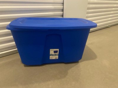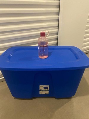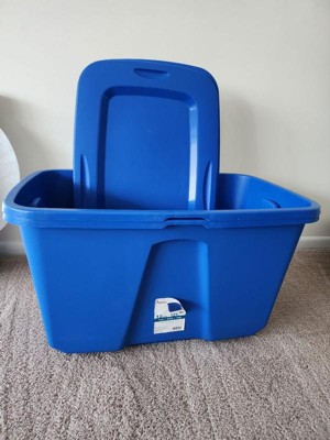 Homz 32 Gallon Standard Plastic Storage Container with Secure Lid, Blue, 2 Pack