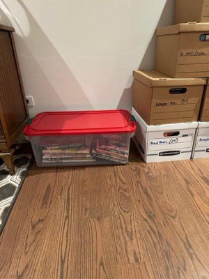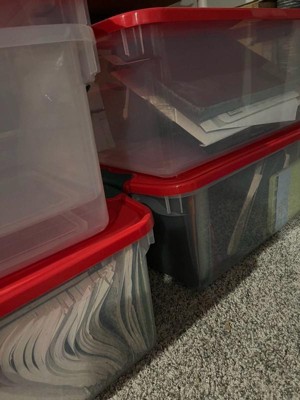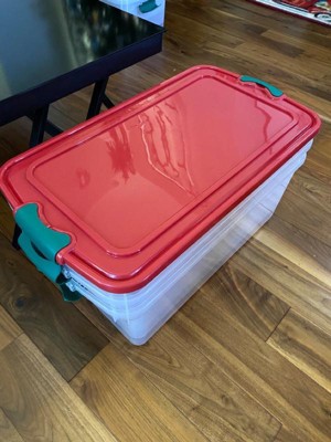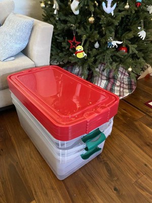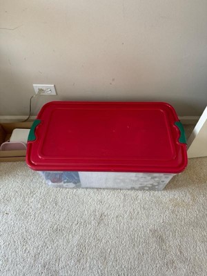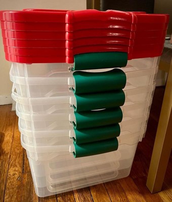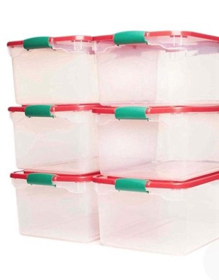 Homz 64 Qt Holiday Seasonal Decor Plastic Storage Bin with Latching Lid, 6 Pack