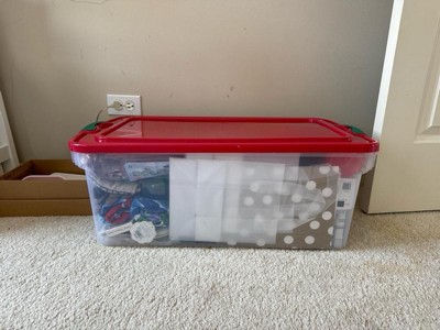 [This review was collected as part of a promotion.] I was able to fit all my Christmas decor and have room leftover for next year! Larger than expected. Very sturdy with click tight lids. See thru for easily identified objects! Great product!