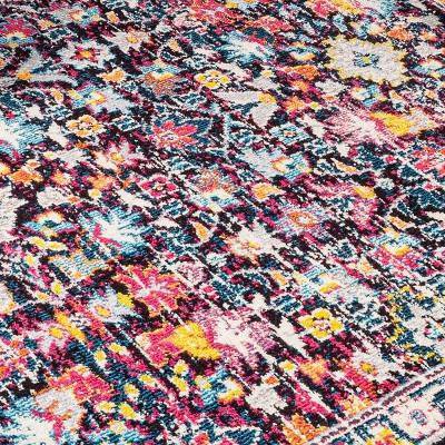 JONATHAN Y Modern Boho Floral Multi/Purple 5 ft. Square Area Rug, Non-Shedding, Easy-Clean, Durable Synthetic Fibers