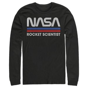 Men's NASA Rocket Scientist Vintage Striped Logo Long Sleeve Shirt - 1 of 3