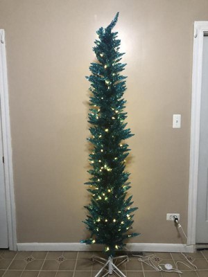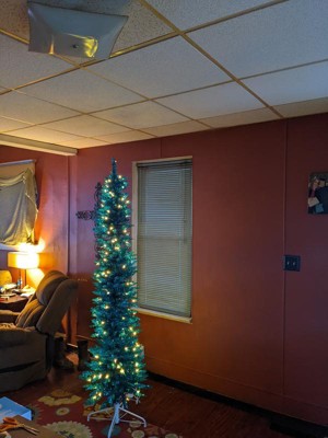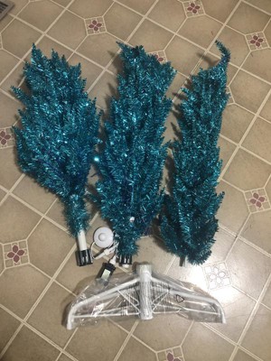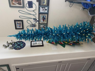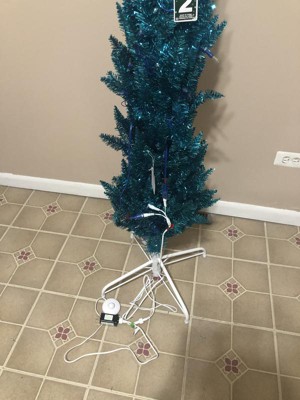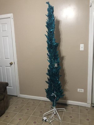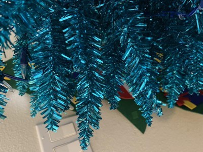 [This review was collected as part of a promotion.] Ever thought "what in the world would I do with THAT?" Those were my exact thoughts about this tree. First of all, I got it AFTER Christmas. And while I would put it up as a secondary (or tertiary) tree, I actually think I'm going to like it as a yearlong house decoration better. Being tall and skinny, it fits into literally any corner. You can even put it into a dark corner because it brings its own light! So, the color.... The description and picture does not really showcase how shiny and blue it is. Imagine Iridescent teal tinsel and you're getting closer to what to expect. I love it. It's quirky, bold, unique. Easy to assemble; and has a man easy foot on/off button so you don't have to plug & unplug constantly.