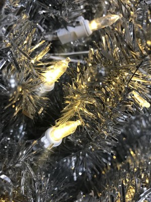 Home Heritage Tinsel Tree 9 Foot Skinny Pencil Pre-Lit Artificial Christmas Tree Holiday Decor with 250 Warm White LED Lights and Stand, Champagne