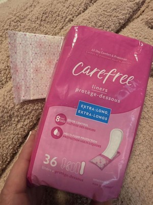 [This review was collected as part of a promotion.] I tried the Carefree Extra Long liners, and had a good experience with them. Great material is soft and comfortable, and the liners are thin but still provides a good a good coverage because they are extra long. They don't have a strong odor which I like. The packaging is comfortable and easy to carry on a purse. I N my opinion this liners are perfect when you're finishing your period and don't want to wear regular pads anymore.