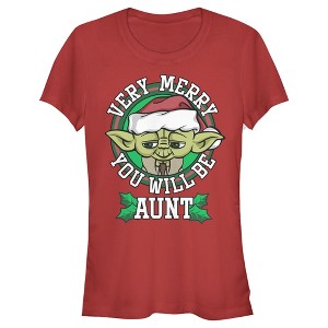 Juniors Womens Star Wars Christmas Yoda Very Merry Aunt T-Shirt - 1 of 3