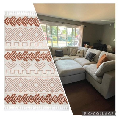 Beautiful rug! Super unique with the different textures. I get so many compliments on it. Obsessed with the rust orange.