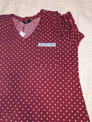 Agnes Orinda Womens Plus Size V Neck Polka Dots Short Sleeve Sleepwear Pajamas Nightgown 2X Burgundy is what Sleepwear should look and feel like. I like the color with the polka dots. The little pocket detail with lace is a cute addition. The perfect Tshirt feel sleepgown.